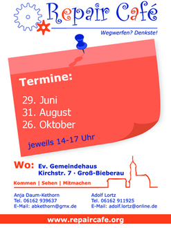 Informationen zum Repair Café finden Sie unter www.repaircafe.org/de oder auf Facebook unter „Repair Cafe Groß-Bieberau“.