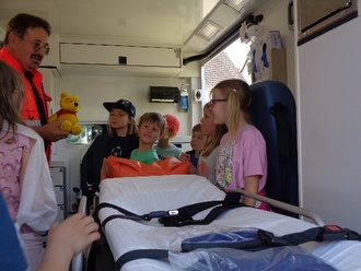 Zum Abschluss kam der Rettungswagen zur Ev. Kindertagesstätte und die Kinder durften sich den Rettungswagen von innen ansehen und die Sanitäter erklärten die Materialien.