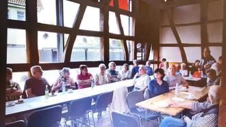 In der Diakoniescheune wurden die Teilnehmer mit Kaffee und Kuchen durch den Kulturverein bewirtet. Dort stellte Georg Krell mit einem Diavortrag über 20 Hofreiten vor. Er erzählte Wissenswertes und spezielle Geschichten rund um diese Gebäude und bezog sein Publikum in den Vortrag mit ein. Auch die Teilnehmer konnten viele Informationen noch ergänzen und es entstand ein bunter Dialog mit lustigen und interessanten Anekdoten im Zusammenhang dieser historischen Hofreiten.