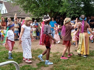 Zum Abschluss des Sommerfestet tanzten die Kindergarten-Kinder zu dem Lied „Wir singen vor Freude…“