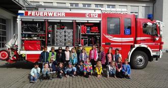 Im Gerätehaus sahen die Kinder einen Film, in dem erklärt wurde, wie man sich im Brandfall verhalten sollte. Die Feuerwehrmänner sprachen mit den Kindern über die Gefahren des Feuers und das richtige Verhalten im Brandfall und die Kinder übten das Absetzen eines Notrufes.