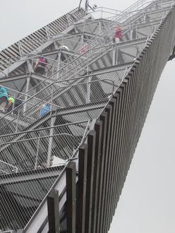 Weiter ging es auf einem bequemen Höhenweg, irgendwann war das Tagesziel erreicht. Der „Ireneturm“, offenbar eine Schwester des „Schiefen Turms von Pisa“. Ein kühnes Bauwerk.