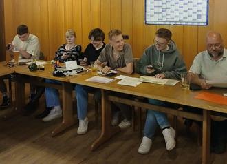 Die Jugend beim Lesen der Sketche, später geht es auf die Bühne zum Proben.