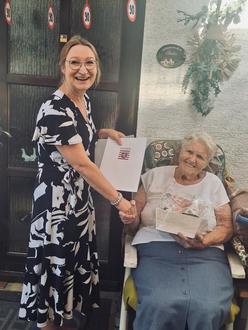 Letzte Woche konnte Frau Gertrud Tkalec ihren 90. Geburtstag feiern. Zu den zahlreichen Gratulanten zählte auch Frau Bürgermeisterin Vogt, die außer der Urkunde und dem Präsent des Magistrats der Stadt Groß-Bieberau auch die Glückwünsche von Herrn Ministerpräsident Boris Rhein und Herrn Landrat Schellhaas überbringen konnte. Wir wünschen der rüstigen, freundlichen Jubilarin alles Gute.
