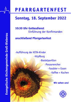 | 10.30 Uhr | Gottesdienst zur Einführung der Konfirmanden mit Pfarrer Sebastian Bähringer. Anschließend findet unser Pfarrgartenfest statt. Hierzu sind Sie herzlich eingeladen. |