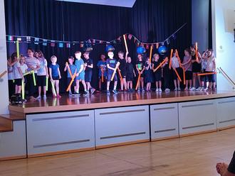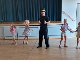 Die erste Woche stand ganz unter dem Motto „Zirkus der Kulturen“. Gemeinsam mit Till Pöhlmann, Profi-Jongleur und Artist, konnten sich die Kinder in verschiedenen Zirkus-Disziplinen ausprobieren. So wurden Jonglieren und Teller-Drehen genauso geübt wie Pois schwingen oder Zaubertricks. Am Freitag wurden diese Künste mit passender Musik und Kostümen den Eltern, Geschwistern und Großeltern in einer Aufführung im Bürgerzentrum präsentiert. Eine wirklich gelungene Show, die von den Kindern selbst gestaltet wurde.