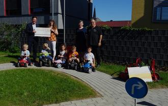 In Groß-Bieberau trägt die „Stiftung Unsere Kinder, unsere Zukunft - Stiftung der Volksbank Odenwald“ zuletzt mit einer Spende in Höhe von 6.780,00 Euro zum Bau einer Bobbycar-Bahn auf dem Gelände der Evangelischen Kindertagesstätte bei. Die Spende freut die rund 100 Kindergartenkinder, die dort betreut werden. Auf der neuen Bobbycar-Bahn können sie nicht nur ihre motorischen Fähigkeiten entwickeln, sondern auch soziale Interaktionen und gemeinsames Lernen in einer geschützten und fröhlichen Umgebung erleben.