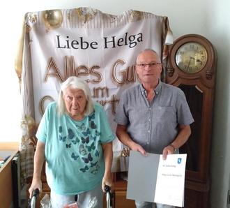 Am 31.08 konnte Frau Helga Manegold ihren 92sten Geburtstag feiern. Der erste Stadtrat Walter Hochgenug überbrachte der rüstigen Jubilarin die Glückwünsche des Magistrats der Stadt Gross Bieberau und ein kleines Präsent. Noch stets ist Frau Manegold jede Woche auf dem Darmstädter Wochenmarkt zu finden, wo sie mit ihrem Sohn Horst ein Blumengeschäft betreibt, welches u.a. auch weitgehend ehrenamtlich gewisse Bereiche des Darmstädter Fussballstadions dekoriert. Dies würde sie fit halten und sie wolle das auch noch bis zum100sten Geburtstag machen – so die Seniorin. Das ist doch ein guter Vorsatz!
