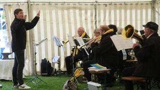 Julius Schmunk, der junge Nachwuchsdirigent, stimmt den Evergreen Hit: „Y.M.C.A.“ und den Ohrwurm „Mein kleiner grüner Kaktus“ an.