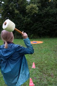 Wir Spielebetreuer und auch unsere teilnehmenden Kinder hatten trotz des Regenwetters viel Spaß an den verschiedenen Spielestationen. Besonders beliebt waren die kooperativen Spielformen, sowie die Stationen mit hohen Bewegungsanteil, an denen sportliches Geschick gefragt war. Der absolute Favorit des Tages war das Traktorrennen. Nicht nur die Kinder, auch unsere Spielebetreuer hatten sehr viel Spaß daran mit dem Spielzeugtraktor durch den Slalomkurs zu fahren.