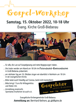 | 18.00 Uhr | Konzert Psalmen-Klang von den Ev. Kirchenchören Groß-Bieberau und Georgenhausen-Zeilhard und dem Ev. Posaunenchor. |