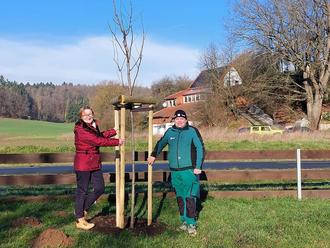 Letzte Woche trafen sich unsere Bürgermeisterin Anja Vogt und Herr Fillsack vom Garten- und Landschaftsbau Fillsack im Stadtteil Rodau zur Besichtigung der Bäume, die dort von seinem Team auf dem Kinderspielplatz gepflanzt wurden. Die ersten 10 Bäume wurden in 2022 gepflanzt, weitere 5 folgen im Frühling dieses Jahres.