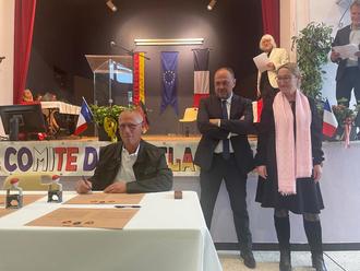 Zum krönenden Abschluss des Vormittags wurde dann auch in Montmeyran der gemeinschaftliche Vertrag zwischen den 3 Gemeinden noch einmal von den Bürgermeistern Olivier Rochas und Dominique Sylvester und Bürgermeisterin Vogt erneut unterschrieben und damit bekräftigt. Er wurde danach von den derzeitigen ersten Vorsitzenden Jean-Luc Fessier, Ute Zahn-Benkenstein und Fritz Volz auf Französisch und Deutsch verlesen. Und mit einem abschließenden Aperitiv ging eine würdige Feier zu Ende, die Gäste verabschiedeten sich zum traditionellen Mittagessen in den Familien. Und zum weiteren Verlauf des Wochenendes mehr in der nächsten Ausgabe.