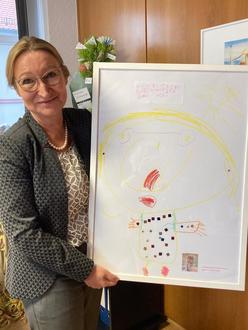 Unsere Kleinen und Kleinsten der Kita Mullewapp überraschten Frau Bürgermeisterin Vogt mit diesem tollen „Selbstbildnis“, für das sofort ein Ehrenplatz im Büro gefunden wurde.