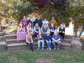1. Reihe von Links: Frau Burkhardt, Referentin, Madeleine Pfleger, Christine Kutschmarski, Mirja Becker-Koller 2. Reihe von links: Simone Späth, Ute Schönig, Sandra Stephan, Ursel Buxmann (KV), Franziska Engeland (KV), Pfarrerin Frau Heckmann-Fuchs 3. Reihe von links: Yvonne Kurtzke, Martina Paulus, Jörg Wegel (KV), Jeannette Schmidt, Angela Maruhn