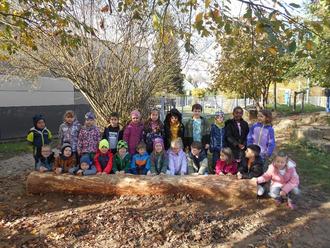 Die Kinder freuen sich sehr über den neuen Baumstamm und seine Spielmöglichkeiten.