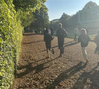 Bei herbstlicher Kälte, aber strahlend blauem Himmel liefen zwischen 8:30 und 9:30 Uhr vorwiegend Schülerinnen und Schüler, aber auch einige Lehrkräfte den etwa einen Kilometer langen Rundkurs um die Schule - manche schnell, manchen langsam, jeder nach seiner Façon. Jede Runde zählte, und schon bald wärmte nicht nur die Sonne die Läuferinnen und Läufer.