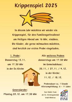 Am 13.11.25 starten wieder die Proben für das Krippenspiel.