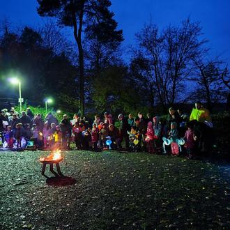 Die im Vorfeld mit den Kindergartenkindern geschnitzte Kürbisse leuchteten mit den Laternen und dem Lagerfeuer in der Dunkelheit.