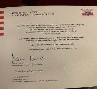 Hessischer Integrationspreis 2024 geht an Alara Evcimen und Emma Logemann - Schülerinnen der Albert- Einstein-Schule in Groß-Bieberau