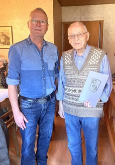 Er überreicht hierzu eine Urkunde mit den Glückwünschen des Magistrats und einen Einkaufsgutschein vom Hofladen Albrecht.