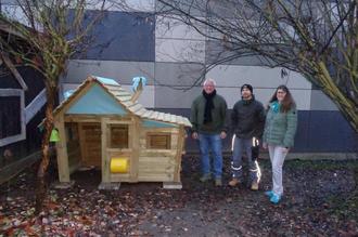 Der erste Teil vom Spielhäuschen wurde vom Hausmeister Herrn Blumenschein aufgebaut. Fertig gestellt wurde das Häuschen von dem Kita-Papa Herrn Sullo. Den letzten Schliff bekam das Häuschen von den Kita-Papas Herrn Sullo und Herrn Höngesberg.