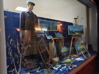Diese Ausstellung wird etwa bis Februar zu sehen sein. Die Namen der Hobbykünstler sind im Schaufenster gekennzeichnet, falls ein Kontakt gewünscht ist.