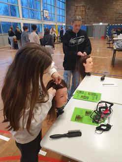 In der Turnhalle wurden daher am 24. Januar verschiedene Stationen aufgebaut, an denen alle Schüler und Schülerinnen der Jahrgangsstufe 7 (unabhängig vom Schulzweig) die für das jeweilige Ausbildungs- und Berufsfeld notwendigen Fähigkeiten und Fertigkeiten erkunden und ausprobieren konnten. So konnte auch der Umgang mit berufsspezifischen Materialien und Werkzeugen ermöglicht werden und es wurden u.a. Blumensträuße gebunden, Betten bezogen, geschliffen und vieles mehr. Einiges war für manche Schüler Neuland und vielleicht hat der eine oder andere hierbei ein Berufsfeld entdeckt, von dem er gar nicht wusste, dass es ihn interessieren könnte.