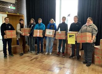 Unsere SV, sowie ukrainische Schüler, die seit ca. 2 Jahren an der AES sind, halfen den Vertretern der Johanniter tatkräftig bei der Sammelaktion mit.