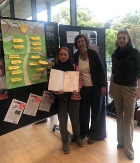 Unter den 136 südhessischen Schulen, die im Kongresspark Hanau ausgezeichnet wurden, war auch in diesem Jahr die AES. Besonders hervorgehoben wurde die Fahrradaktion, die durch den schuleigenen Arbeitskreis „Albert for Future“ entstanden ist. Eine Woche lang rief die Gruppe alle Schüler:innen und Lehrkräfte dazu auf, den täglichen Weg zur Schule mit dem Fahrrad zurückzulegen – ganz im Sinne gelebten Klimaschutzes. So kam am Ende eine beeindruckende Strecke zusammen, die bis nach Kopenhagen geführt hätte.