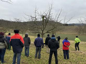 Am Samstag, den 15. Februar 2025, trafen sich auf Einladung des NABU Groß-Bieberau rund ein Dutzend Teilnehmer*innen zu einem Obstbaumschnittkurs auf der Streuobstwiese des NABU. Fachmännisch geleitet wurde der Kurs durch Jan Heimer vom Team Astwerk mit Unterstützung von Marius Hüther (Landschaftspflege Darmstadt-Dieburg e.V.). Zunächst gab es eine theoretische Einführung in den korrekten Schnitt von Apfelbäumen mit dem Ziel, die Baumgesundheit und die Fruchtqualität zu fördern. Nach einem stärkenden Mittagsimbiss setzten die Teilnehmer*innen ihre gewonnenen Erkenntnisse in die Praxis um. Dabei wurden sie von den beiden Experten beratend unterstützt. Alle waren sich einig, dass der Kurs sehr wertvolles Wissen vermittelt hat.