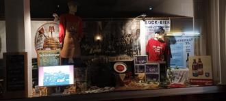 Die legendären Ur-Pils Buwe, die bei der großen Brauerei Party für Stimmung sorgen werden, sind mit Bildern und T-Shirts im Fenster präsentiert.