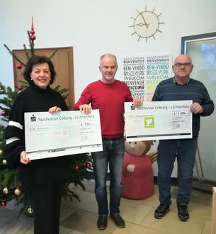 Über einen Spendenscheck in Höhe von 1.500 € hat sich Hartmut Bohl von der Stiftung für krebskranke Kinder Coburg, sowie Edda Kroos von der Tafel Coburg in Höhe von 500 € gefreut.