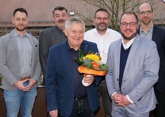 David Filberich, Harald Hager, Timo Sommerluksch, Sebastian Straubel und Torsten Hetz (von links) haben Manfred Lorenz (Dritter von links) für sein langjähriges Engagement im Coburger Landratsamt gedankt.