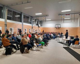 Am 9. April 2024 fand im Rahmen der Dorferneuerung Großheirath die Zwischenpräsentation statt. Die Resonanz war enorm: Über 100 Interessierte Bürgerinnen und Bürger kamen in die Schulturnhalle, um sich über den aktuellen Stand und die vorgeschlagenen Maßnahmen zu informieren.
