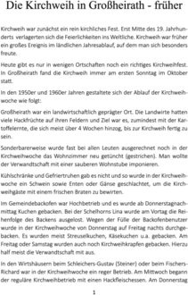 In den nächsten Wochen finden in der Gemeinde Großheirath wieder Kirchweihfeste statt. Diese haben sich in den letzten Jahren stark verändert bzw. es finden kaum mehr Feiern und Aktionen statt.