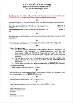 Haushaltssatzung des Schulverbandes Untersiemau für das Haushaltsjahr 2025