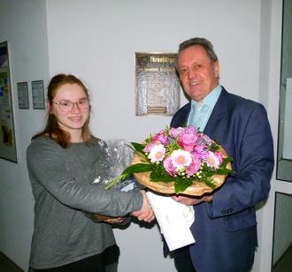 Im Rahmen der letzten Sitzung des Gemeinderates gratulierte Bürgermeister Udo Siegel Frau Julia Chilian, auch im Namen von Landrat Straubel, zur Verleihung des Deutschen Meistertitels, als beste Nachwuchsgesellin im Fach Medientechnologie und überreichte ein kleines Präsent.