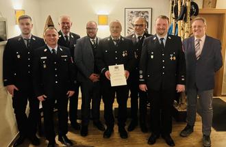 Eine besondere Auszeichnung erhielt Wieland Gerlicher für 50 Jahre aktiven Dienst bei der Freiwilligen Feuerwehr Großheirath. Bereits mit 15 Jahren trat er der Feuerwehr bei und engagierte sich über fünf Jahrzehnte hinweg zuverlässig für die Sicherheit der Bevölkerung und das kameradschaftliche Miteinander. Die staatliche Ehrung wurde durch Landrat Sebastian Straubel vorgenommen.