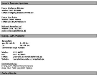 Wir suchen für den Bezirk Lichteneiche (Am Hirschanger, Am Rennsteig, Fasanenweg, Fürstenweg, Gärtnerwinkel, Heideweg, Himmelreichstr., Karl-Körner-Str., Pfr.-Frank-Str., Rebhuhnweg (insgesamt 74 Exemplare)) einen neuen Gemeindebriefausträger/ Gemeindebriefausträgerin. Der Bezirk kann auch gerne geteilt werden, wenn Sie sich vorstellen können, einen Teil der Straßen auszutragen. Der Gemeindebrief erscheint dreimal im Jahr, in der Regel im März, Juli und November. Bei Interesse melden Sie sich bitte telefonisch oder per Mail im Pfarrbüro.