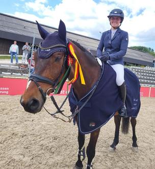 Bei ihrer ersten Teilnahme sicherte sich die 31-Jährige mit dem erfahrenen DSP-Wallach Grand Prix Iwest direkt den Titel – ein starkes Ausrufezeichen für den Reitsport und für unsere Region! Als zweitbeste Deutsche im Gesamtklassement ließ sie die Konkurrenz hinter sich und krönte sich verdient zur Berufsreiterchampioness.