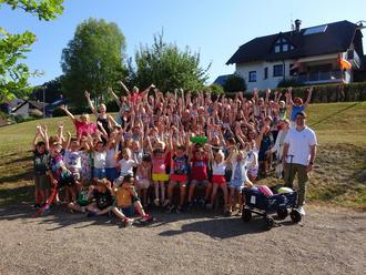 Zusammen mit Rektorin Karin Schanbacher, Bürgermeister Stephan Amend und Sportlehrerin Gunhild Müller-Karl nahmen die Schülerinnen und Schüler die neuen Spielgeräte begeistert in Empfang.