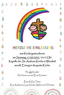 | Wt | 10:15 | Kinderkirche in der Kapelle |