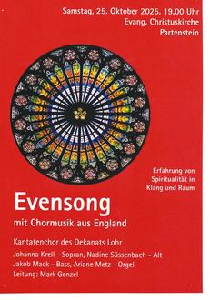 Das evangelische Dekanat Lohr a.Main lädt zu einem Evensong in die Christuskirche ein.