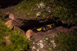 „Feuersalamander teilen sich Höhlen oder stillgelegte Schächte häufig mit anderen Überwinterungsgästen wie Fledermäusen“, berichtet Biologin Dr. Jacqueline Kuhn vom BUND Naturschutz der Kreisgruppe Miltenberg, die das Artenhilfsprogramm für den Feuersalamander im Spessart koordiniert. Beliebte Rückzugsorte für die Salamander im Winter sind auch nicht mehr genutzte Wasserversorgungsanlagen, Wasserbehälter, alte Brunnen und Eis-, Gewölbe- oder Bierkeller.
