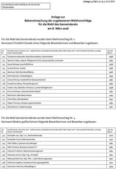 Bekanntmachung der eingereichten Wahlvorschläge für die Wahl des Gemeinderats am 8. März 2026
