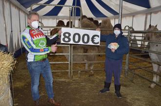 Forchheim (Frankenpedalos). Der Spendenaufruf für den in Forchheim stehenden Zirkus Renz ging auch an den radsportbegeisterten Frankenpedalos nicht unberührt vorüber. Die Anfangsidee, 1 Euro pro gefahrenen Rad-Km zu sammeln, konnte dank positiven Zuspruch der Gruppenmitglieder in eine Sofortspende umgewandelt werden, um den Zirkus mit seinen Tieren möglichst schnell zu unterstützen. Bei der Sammlung unter den Radlern, Bekannten und Freunden kam ein Gesamtbetrag von 800 Euro zusammen, der auch den Zirkustieren zugutekommt, die täglich an der Staustufe im Forchheimer Ortsteil Buckenhofen besucht werden können.