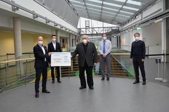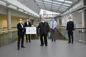 (v.l.) Alexander Brehm (Vorstand der VR Bank Bamberg-Forchheim), Mathias Schick (Leiter Firmenkundenberatung VR Bank Bamberg-Forchheim, Franz Streit (Vorsitzender des Fördervereins Klinikum Forchheim), Oliver Amon (Geschäftsführer des Fördervereins), Sven Oelkers (Geschäftsführer des Klinikums und Schatzmeister des Fördervereins).