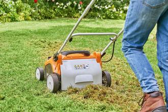 Vertikutieren empfiehlt sich erst, wenn der Rasen die erste Wachstumsphase gemeistert hat. „Ein guter Zeitpunkt ist das spätere Frühjahr, wenn das Thermometer mindestens zehn Grad Celsius anzeigt und trockene Witterung herrscht“, so Gärtner. Ob ein Arbeitsgang mit dem Vertikutierer erforderlich ist, lässt sich mit einem kleinen Test klären: Einfach eine Metallharke leicht durch die Grasnarbe ziehen. Bleiben Mährückstände oder Moos hängen, ist das ein Hinweis darauf, dass der Rasen zusätzliche Unterstützung benötigt. Manchmal reicht auch das Kämmen zur Belüftung. Praktisch sind deshalb Modelle wie der RLA 240 von Stihl, die zusätzlich über eine Lüfterwalze verfügen. \"Mit dem Vertikutieren erhält der Rasen wieder Luft und Platz zum Atmen. Die Schnitttiefe sollte man auf nicht mehr als zwei bis drei Millimeter einstellen, da sonst der Rasen und seine Wurzeln verletzt werden\", erklärt Gärtner weiter. Wichtig ist es außerdem, das Vertikutiergut sorgfältig einzusammeln. Mit der Gabe von Kalk lässt sich der pH-Wert des Bodens regulieren, um einer neuerlichen Moosbildung vorzubeugen.