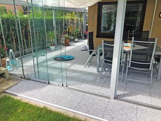 Beim Einrichten kommt es oft auf die Details an. So schafft eine einheitliche Bodengestaltung von der Terrasse bis zum Wintergarten oder dem Wohnraum einen wertigen und wohnlichen Eindruck. Natursteinelemente bieten sich mit ihrer Langlebigkeit, Robustheit und Witterungsbeständigkeit für alle Bereiche im und vor dem Haus an. Gerade wenn der Neubau eines Wintergartens geplant wird oder der Terrassenbelag erneuert werden muss, ist dies eine passende Gelegenheit, für einen nahtlosen Look zu sorgen. Die Natursteinsysteme etwa von Renofloor sind vielfältig verwendbar und insbesondere auch für das schnelle Sanieren gut geeignet. Dabei handelt es sich um hochwertige Quarz- und Marmorgranulate, die in Harz gebunden sind und wie Fliesen einfach und zeitsparend verlegt werden können. Aufgrund der geringen Aufbauhöhe von nur 13 Millimetern kann der vorhandene Belag auf der Terrasse oder im Wintergarten häufig sogar liegen bleiben.